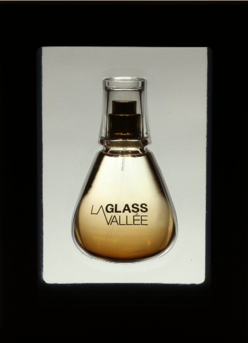 La difficulté a été ici, de créer un coffret permetant de voir les 2 faces du flacon et qui laisse ce dernier comme en "SUSPENSION".